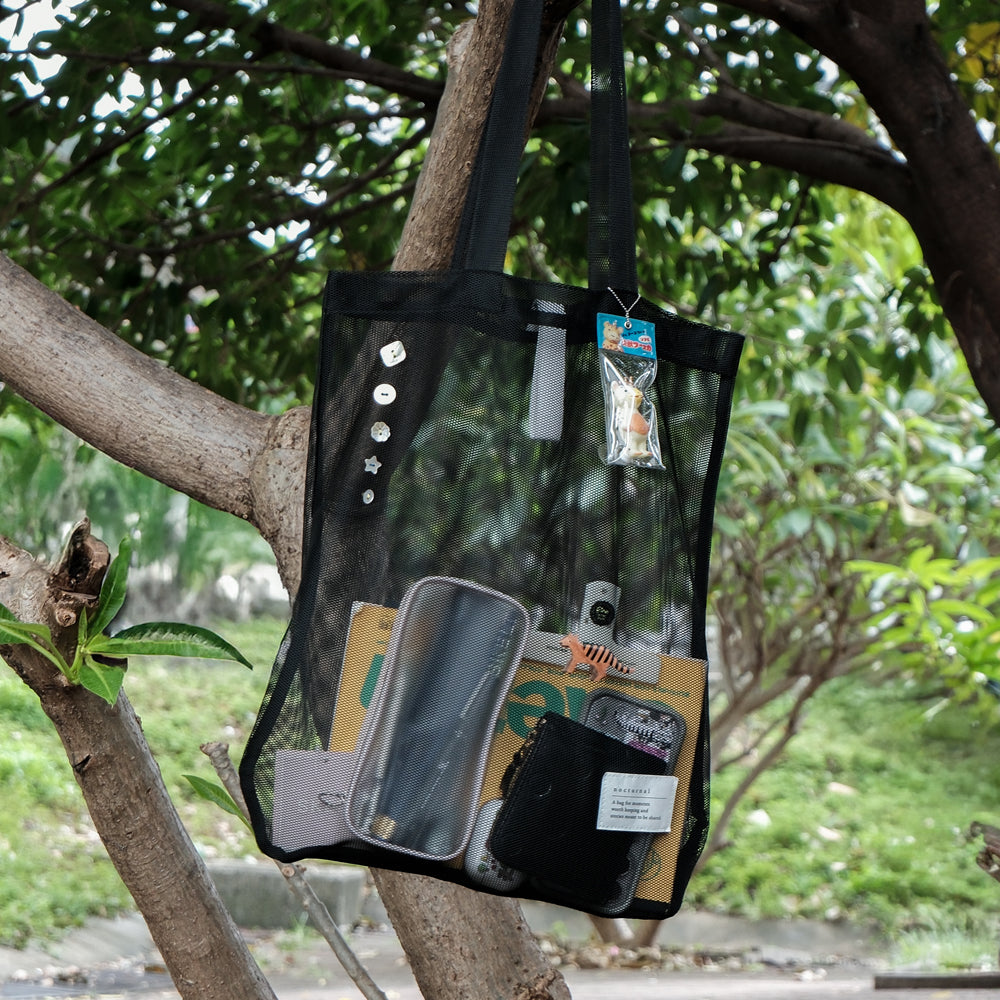 STORY TOTE是月下首個以商品形式發售的手提袋,亦是讓大家能擺放自己心頭好和展示個性的隨身物,輕便和耐磨堅韌的網狀材質會隱約地透視出你的隨行物品,透過不同的物件配搭,STORY TOTE能呈現出不同的風格和模樣,其網狀表面可讓你輕易扣上不同大小的配飾和扣針,增加手提袋的層次感,同時不傷其表面。STORY TOTE在不使用時能摺成約A6大小,收納方便,易於攜帶,束帶另印有let the good things connect us的字眼,跟STORY TOTE的意念互相呼應。