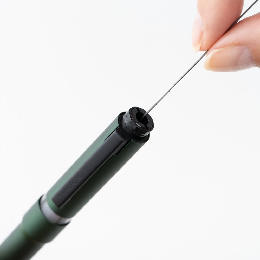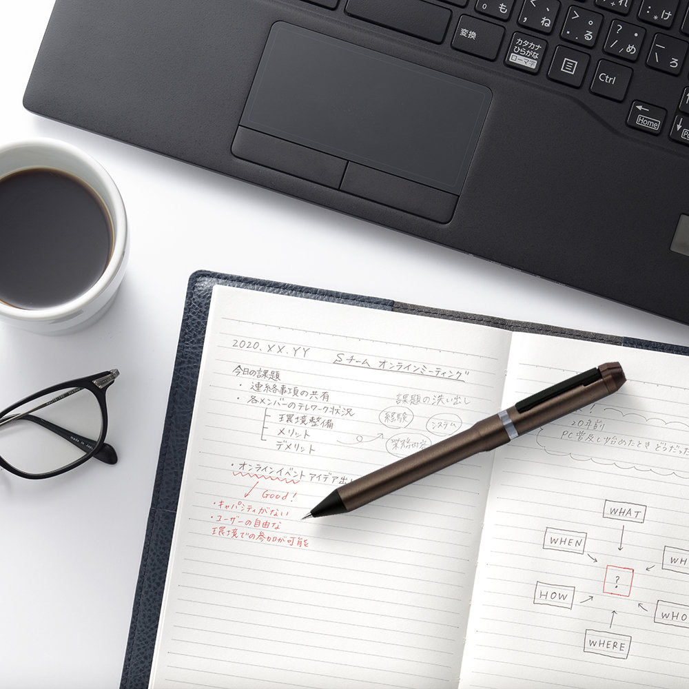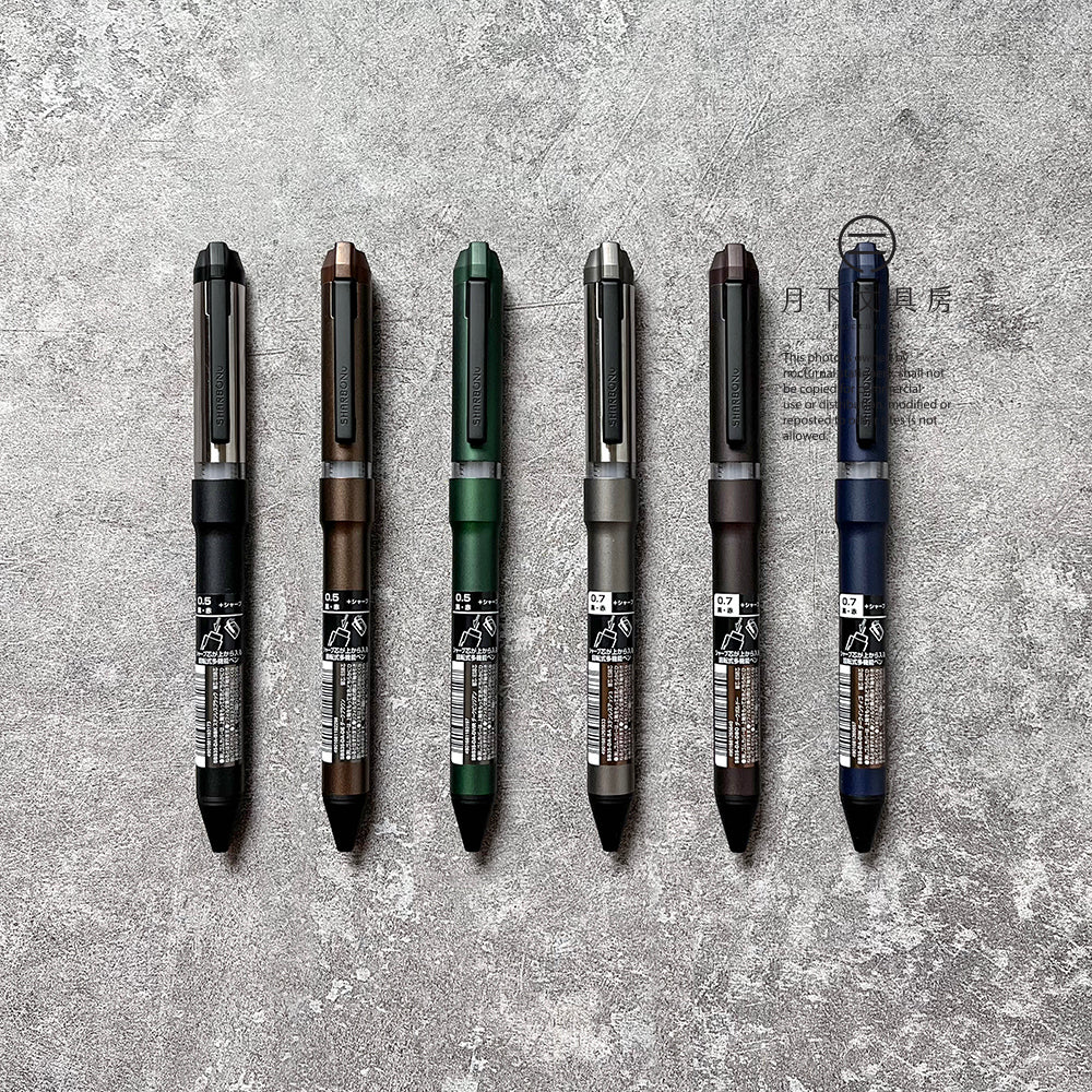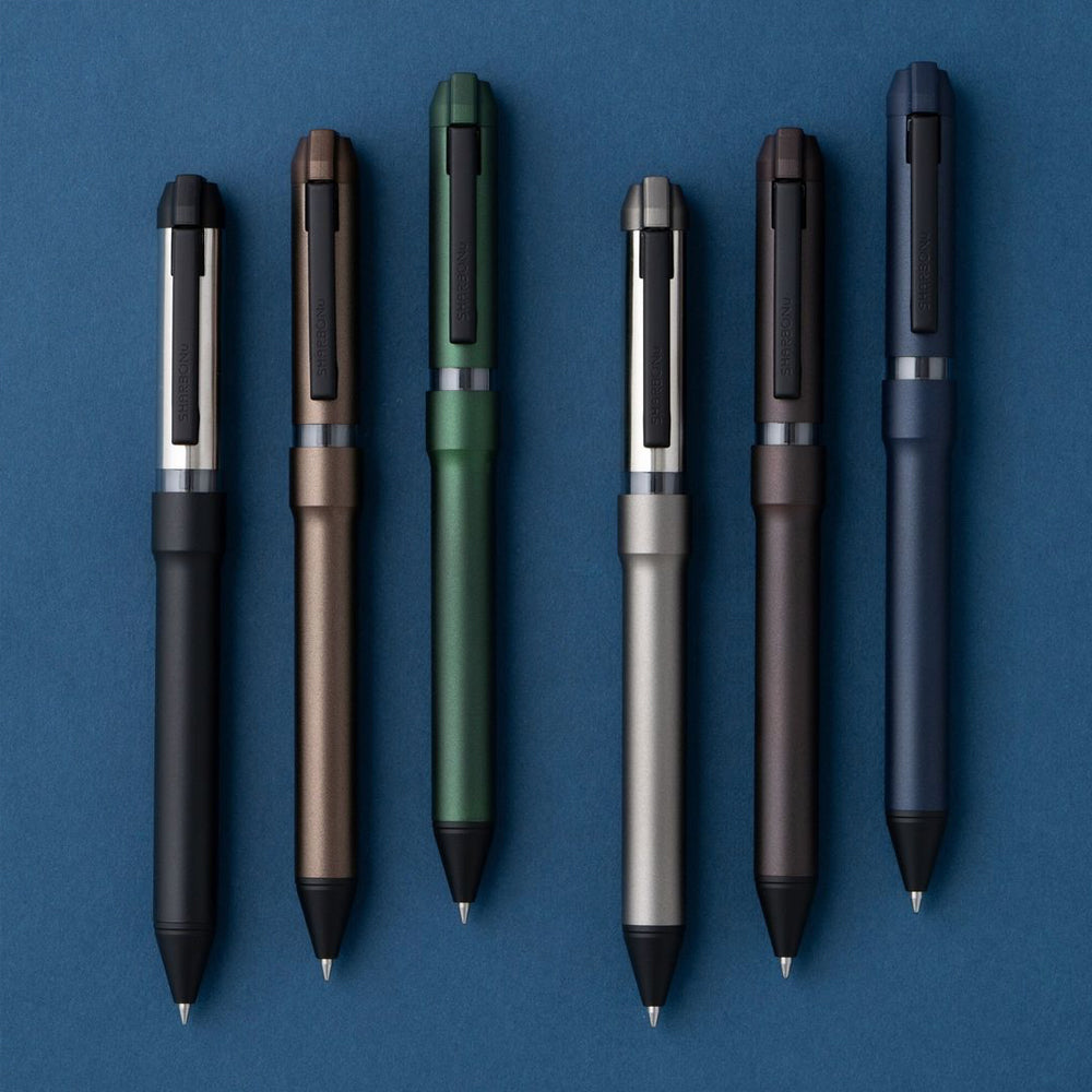 由ZEBRA研發的革命性多功能筆SHARBO NU,入芯的方式跟一般鉛芯筆一樣,同時搭載黑色及紅色原子筆芯,一筆三用,原子筆芯為油水性的混合墨水(耐水性)﹐寫起來順滑流暢,使用時只要扭動筆桿,筆桿中間的特製視窗就會顯示正在使用的筆芯顏色。而這次推出的限定版將以暗調色系為主,筆夾及筆蓋均經過霧面處理,配上不鏽鋼筆桿,時尚又高級,非常適合於職場使用。