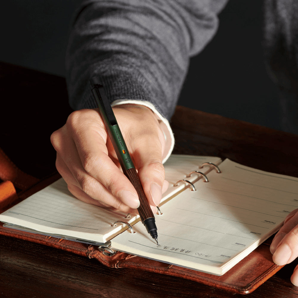 繼承著KURU TOGA METAL的DNA,擁有著天然木材的獨特紋理和溫度,就是KURU TOGA的全新系列WOOD。筆桿如其名採用了色澤和木紋豐富的非洲硬木雞翅木(Wenge)作為木質握把,而上半部則沿用了METAL系列大受好評的鋁製後軸,兩者結合創造出不同材質的和諧,體現出細緻品質和天然木材的味道。KURU TOGA的最大特點,是在於用家每下筆一次,其內置的自轉功能就會令筆芯自行轉動,從而讓筆芯在平均消耗下保持在最鋒利狀態,字跡不會一時變粗變濃,一時變幼變淺,大大提高了用家在寫字時的穩定性,而KURU TOGA ENGINE在這次WOOD系列依舊會找到,這裝置有助減少書寫時筆尖的移動,對於學生或經常要書寫的人來說都是不可多得的功能。