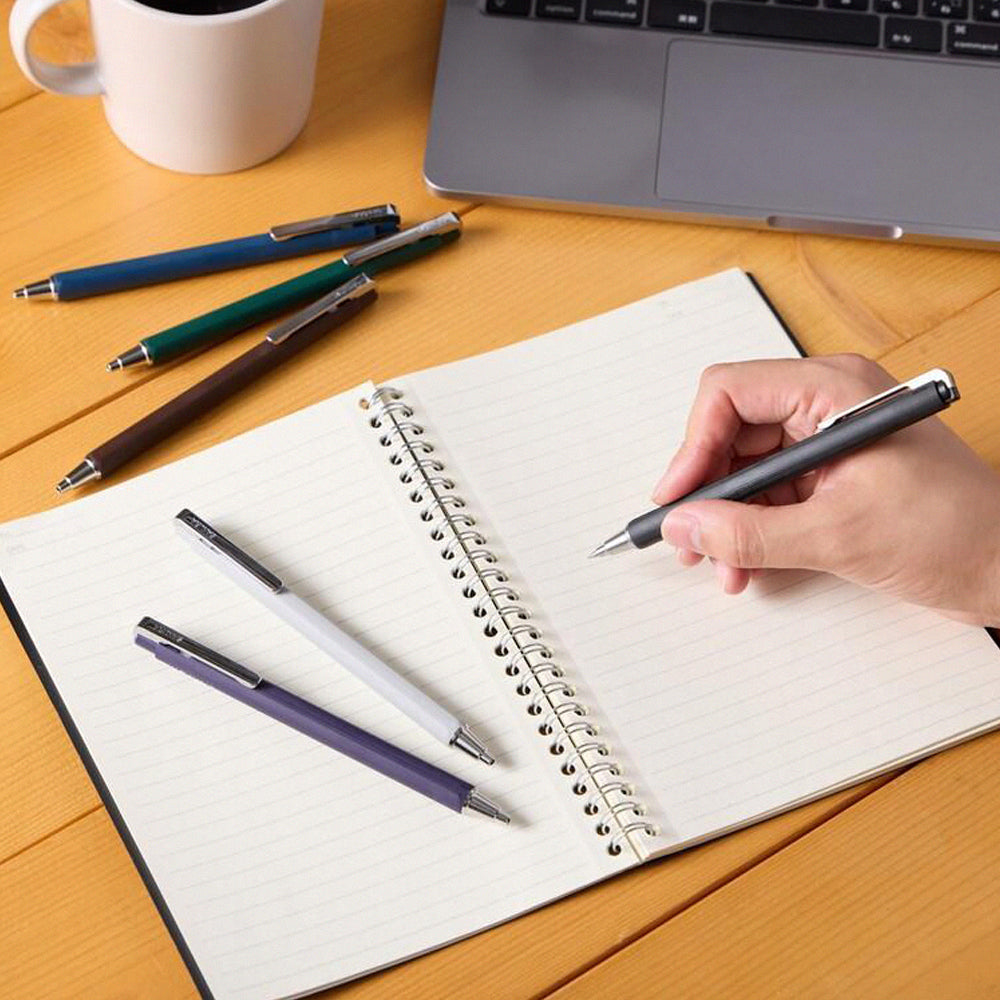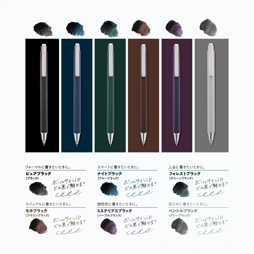 不只是筆桿款式,墨水的顏色其實也能代表著你的個性。由SAKURA推出的Ballsign iD,名字中的iD有著個性化的意義,在保持近乎黑色的墨水中融入一點顏色,就是iD系列的最大特色,既無阻日常工作之餘,亦讓用家可隨著自己喜好選取最能代表自己的黑色。Ballsign iD的筆桿設有一體化銀色筆夾,適合於任何場合攜帶使用,而這次為了加強辨識度,將會依照墨水顏色配上六種不同的筆桿顏色,而且還追加了具觸感的髮絲紋理,不論在外觀和握感上都有所提升。至於過往深受用家喜愛的低重心設計,這次的Ballsign iD也依舊保留,而0.3款將首次採用針型筆尖,讓用家在狹小空間也能舒適地書寫,現有套裝及單支裝可供選擇。