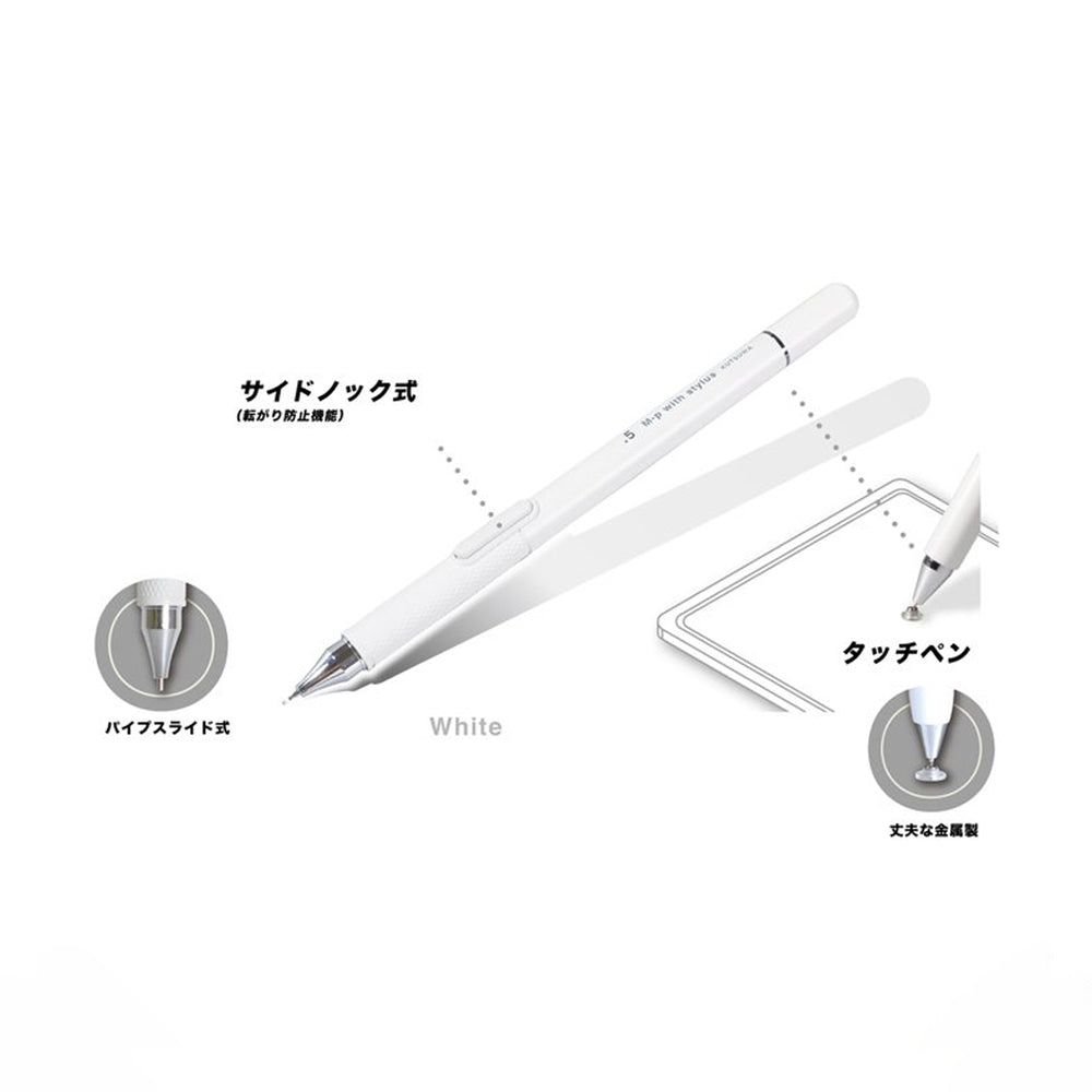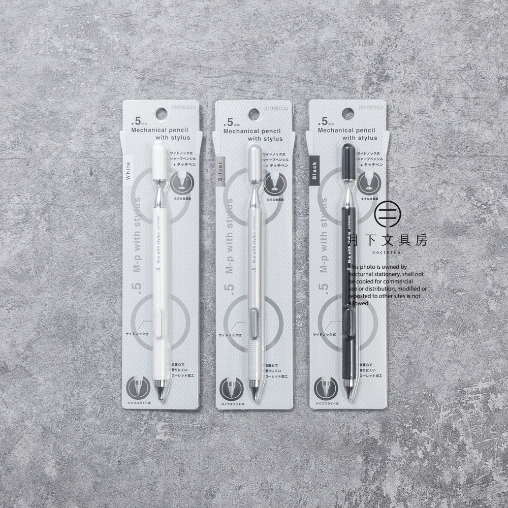 由KUTSUWA推出的兩用筆,包含了鉛芯筆及觸控筆兩種功能,不論是上學、上班或日常使用都非常適合。鉛芯筆採用側按式出芯,易於使用,低重心及握位的滾花設計,有助提升書寫時的穩定度,而伸縮式的筆尖則有助保護護筆芯,筆蓋為磁吸式,開合簡便且不易掉落,減少遺失機會。現有三色可供選擇。