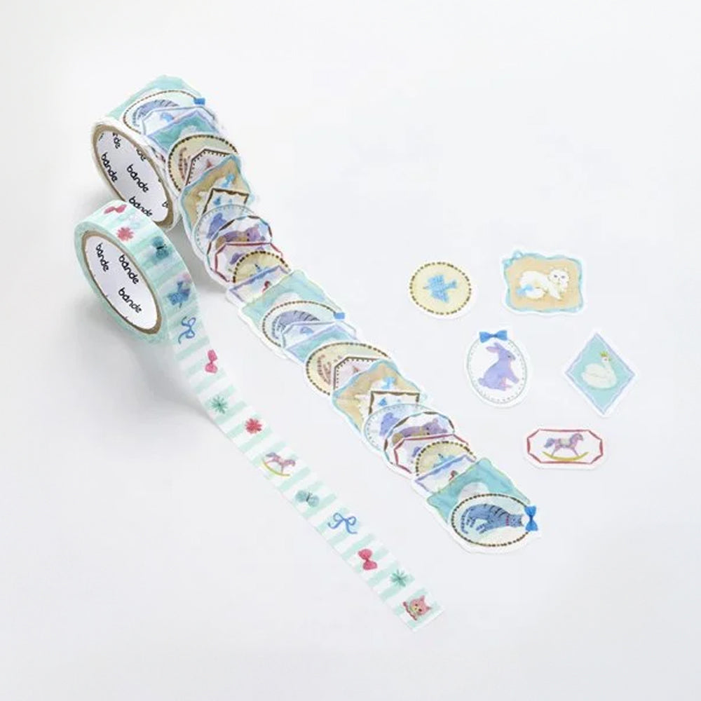 日本文具品牌BANDE向來都以推出手作素材為主,當中的片狀紙膠帶貼紙最為人熟悉,這款貼紙將會以照相館作為主題,而被拍攝的對象將會是居住於森林裡的動物,貼紙一卷共13款,適用於裝飾版面或設計手作心意卡時使用,有別於過往款式,貼紙會另附一卷主題紙膠帶,有助用家創造更多不同配搭。