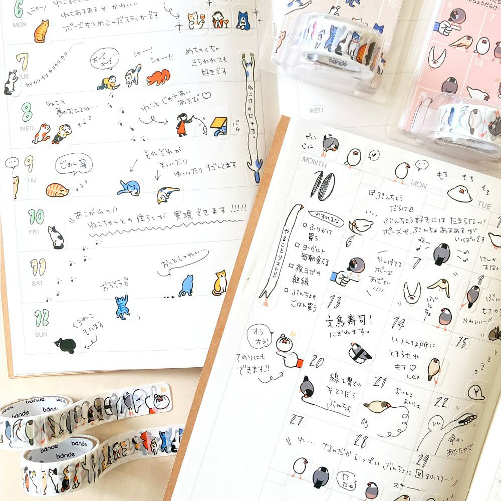 S-249C | BANDE 在手帳裡生活的人系列 紙膠帶貼紙 (小鳥/貓咪)