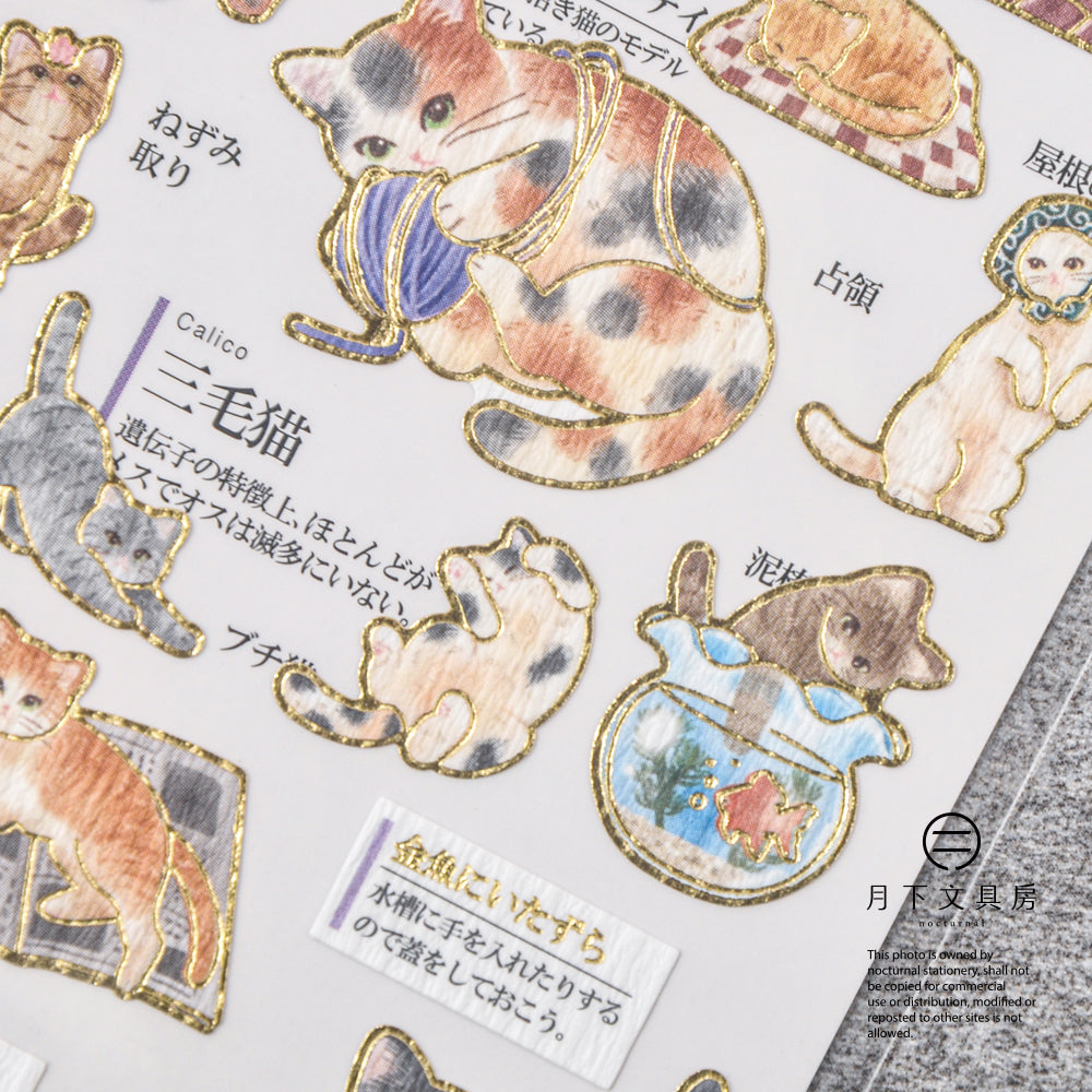 大人向的質感貼紙,全都圍繞著大人感興趣的題材,每張貼紙都燙上了金邊和擁有獨特的紙材紋理,貼紙旁邊附有文字作輕量講解,每一份貼紙猶如一本小型圖鑑,這款以日本出現的貓咪作為主題,可愛插圖配上詳盡相內容,貓奴們絕對不要錯過。