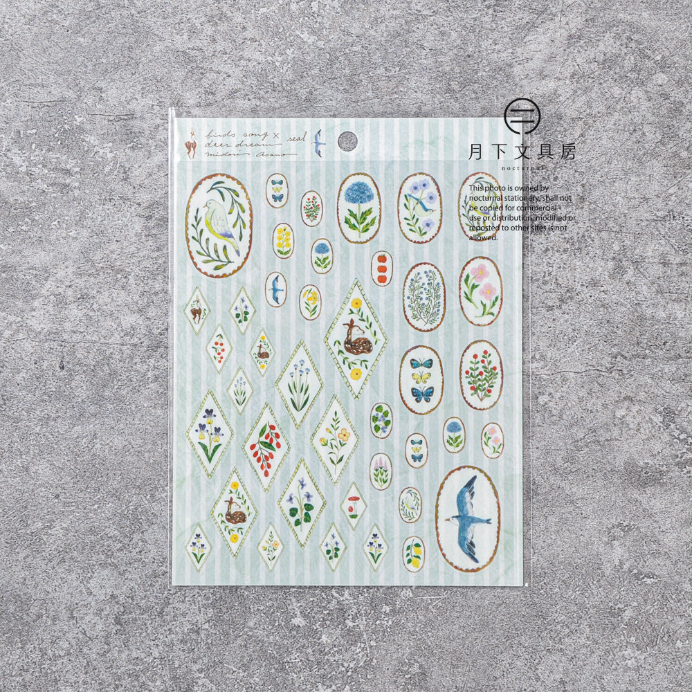 S-372 | 表現社 x 淺野綠 A5 透明貼紙 (birds song × deer dream seal)