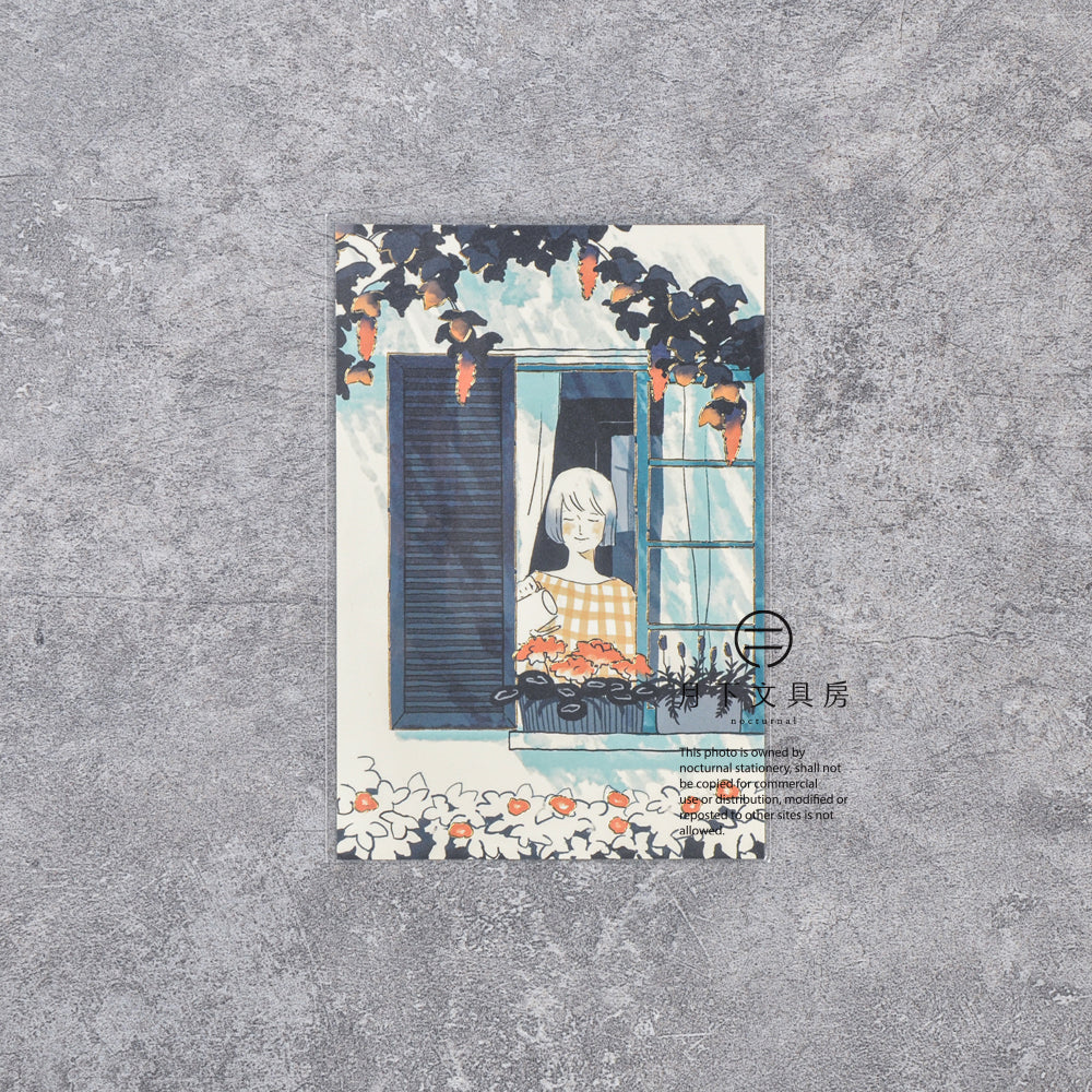 此明信片能跟另一張窗邊 · 咖啡合併成一幅畫。