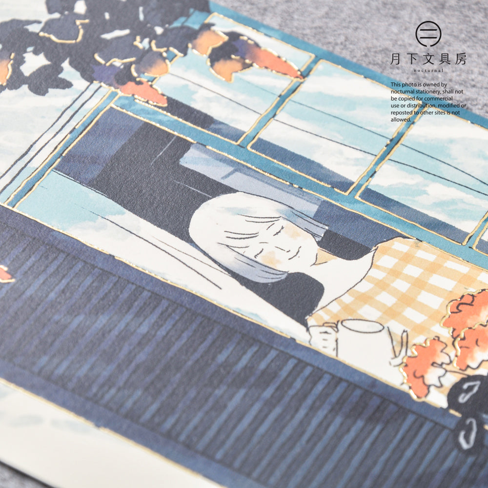 藤巻佐有梨本身從事建築設計工作, 及後以插畫師的身份活躍於書籍、海報設計甚至動畫,她擅長透過水墨筆觸營造氣氛,插畫中的主角大都帶點憂鬱,但那種淡淡然卻令你有種治癒和珍惜當下的感覺。這次由她親手描繪的五款明信片,將以各種日常生活場景作為主題,藍色調子配上精緻的燙金技術,非常好看,當作心意卡送給別人或擺放於房間作為裝飾都非常適合。