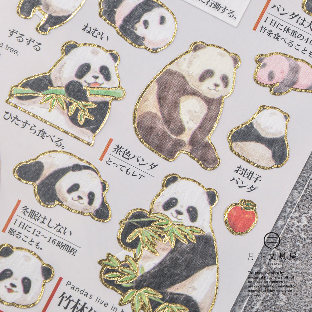 大人向的質感貼紙,全都圍繞著大人感興趣的題材,每張貼紙都燙上了金邊和擁有獨特的紙材紋理,貼紙旁邊附有文字作輕量講解,每一份貼紙猶如一本小型圖鑑,這款以熊貓日常生活習性作為主題的貼紙,收錄了大量熊貓的表情、動態和習性,並附上了相關的說明,讓你對熊貓有更深的了解。