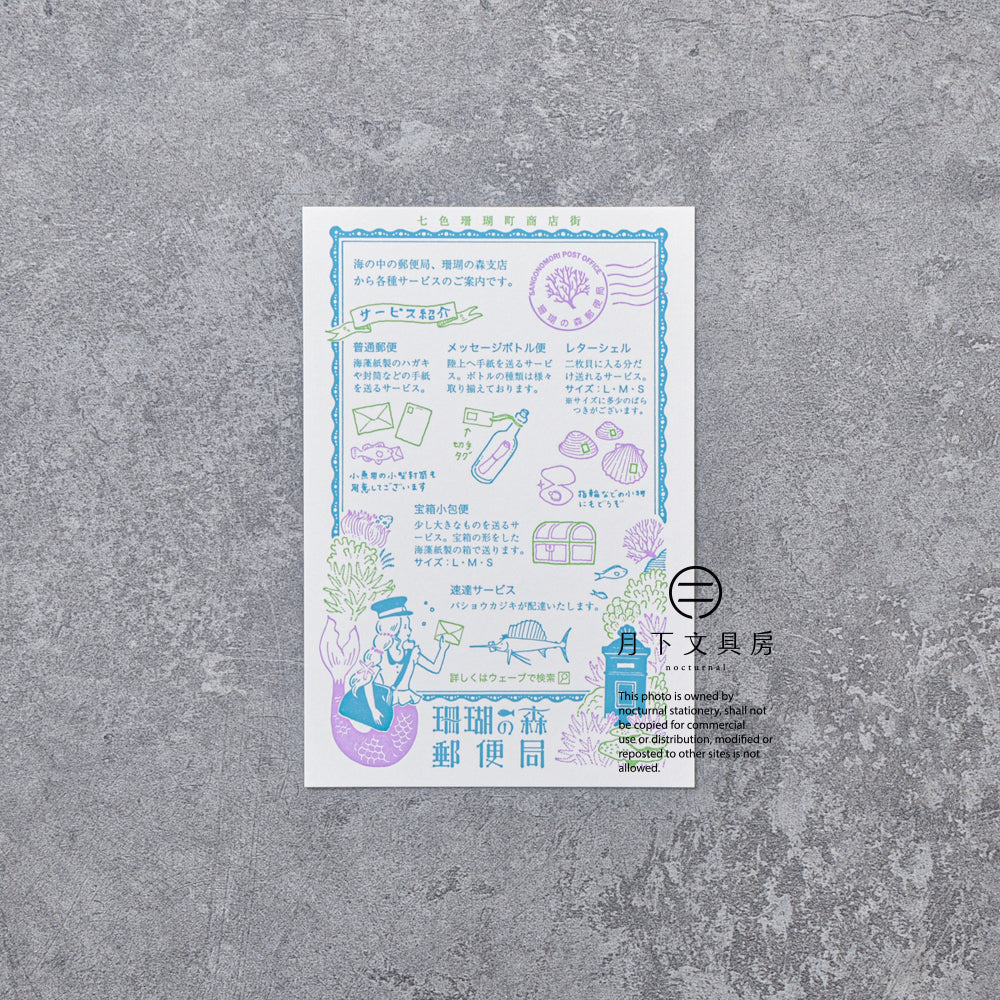 S-419 | KYUPODO 架空商店街 活版印刷明信片 (七色珊瑚町商店街 - 珊瑚之森郵局)