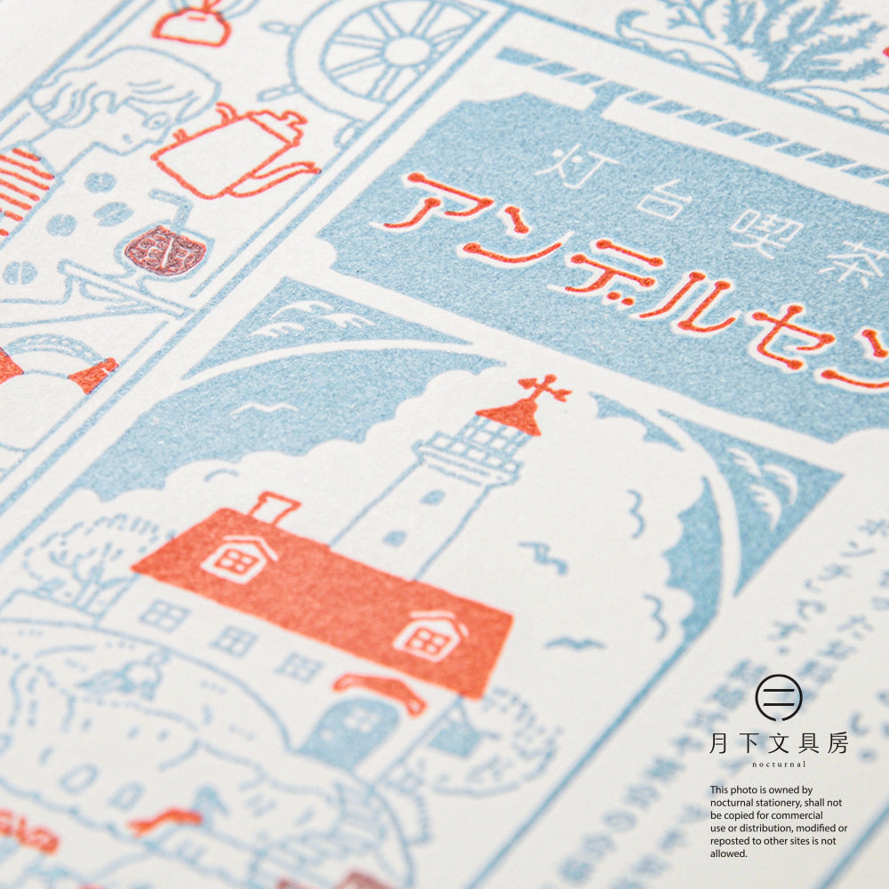 S-420 | KYUPODO 架空商店街 活版印刷明信片 (七色珊瑚町商店街 - 安徒生燈塔咖啡店)