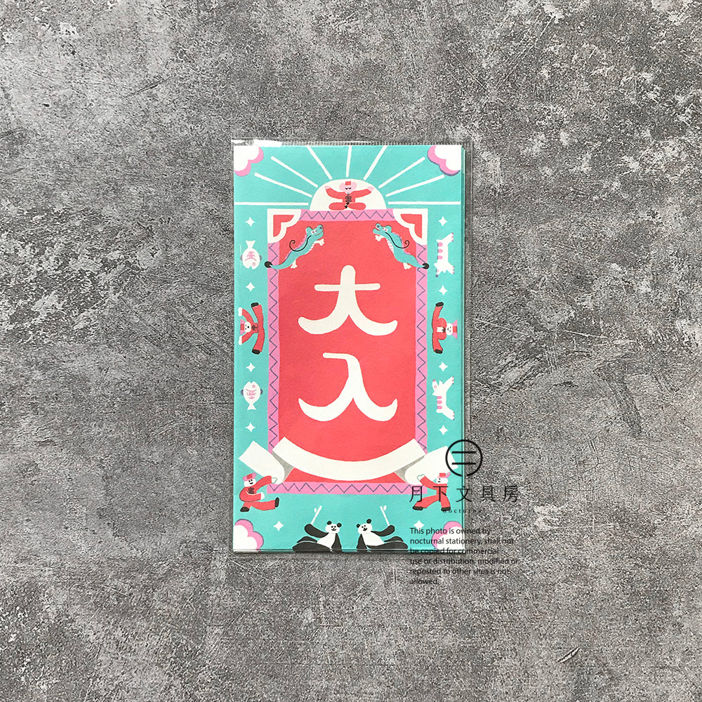 這款AIUEO禮封由Akiyo設計,有別於傳統的禮封,採用了一年四季都可以使用的圖案和配色,當作利是封或信封使用都可以。禮封上的插畫充滿了喜慶感,除了鼠鼠仙人,還有太極少女和熊貓助興,非常熱鬧~當中的「大入」有著滿滿的意思,喻意把你給予的祝福、利是錢或心意都填滿在這個禮封之中。
