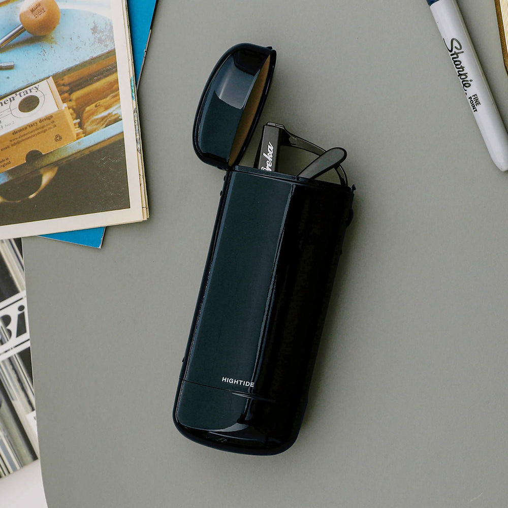 曾一度停產的HIGHTIDE超人氣眼鏡盒,只需按下盒子邊緣的按鍵,盒的蓋子就會立即打開,使用方便,是會令人手上癮的設計。用料方面,盒的外殼使用堅硬的鋼材製造,內部則覆蓋了絨毛材質,耐用度很高﹐此外,這個眼鏡盒也可以當作筆盒使用,其特大開口可讓你能輕鬆擺放各種文具。