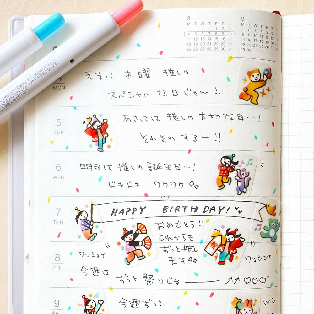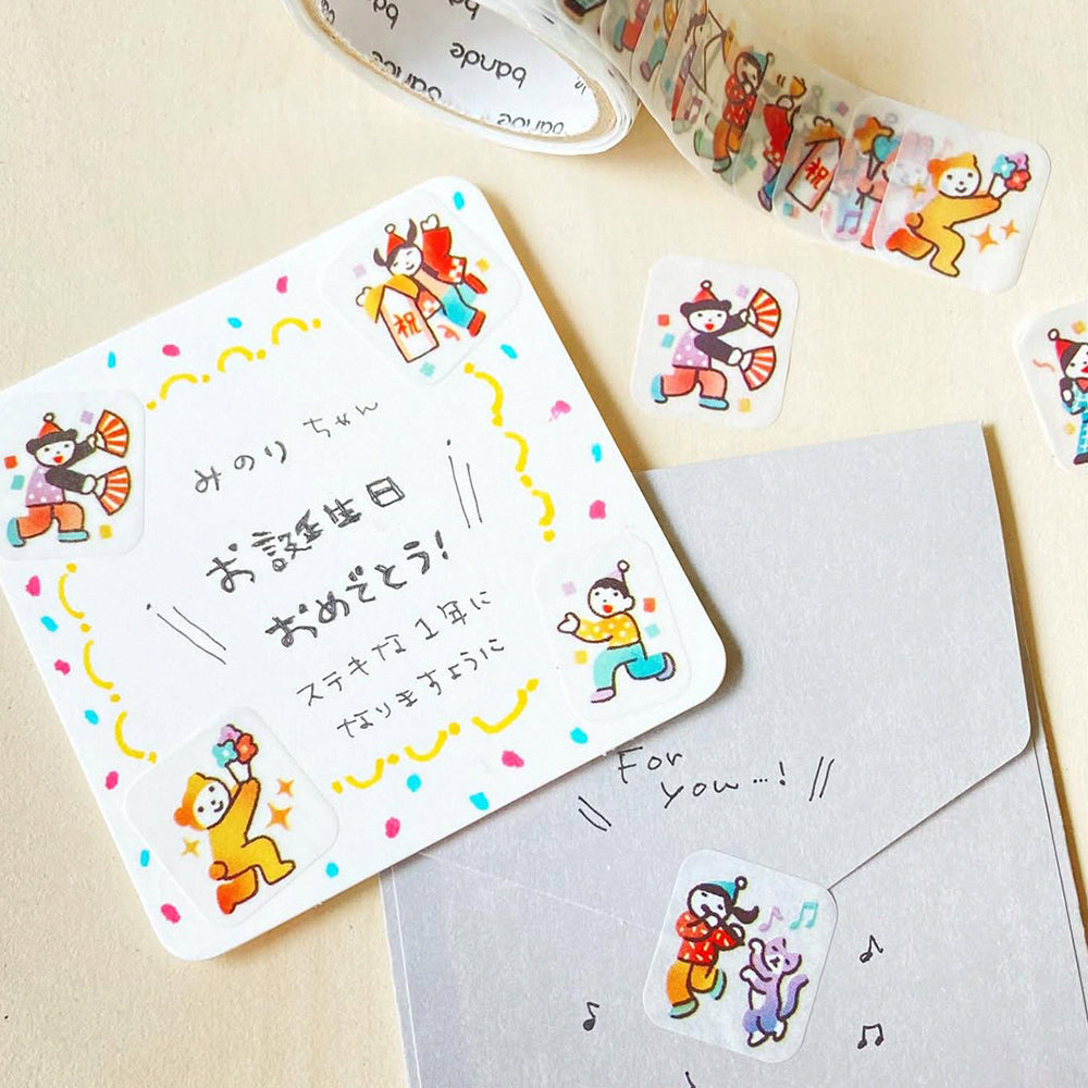 日本文具品牌BANDE向來都以推出手作素材為主,而為了慶祝BANDE九週年,廠方特意推出了紀念版的貼紙,並以極為貼題的慶祝小隊作為題材!充滿喜慶感的小人和一眾朋友,有打氣的、有載歌載舞的,非常熱鬧,你也能配合人氣極高的<在手帳裡生活的人系列>貼紙一同使用,為手帳營造出喜慶氛圍,尤其是那些對你來說別具意義和重要的日子,你也能將之用於心意卡和書信上,實用度極高。