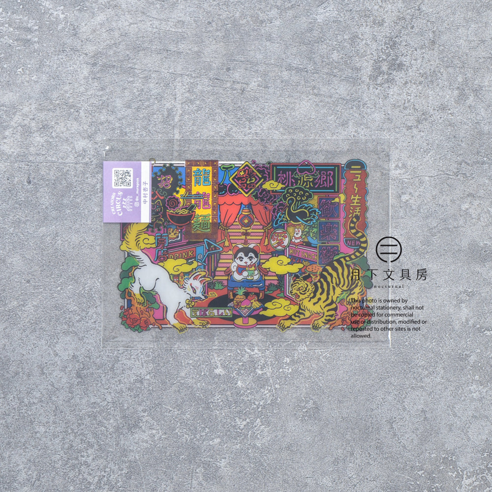 日本文具品牌FRONTIER所展開的CREATORS CIRCUS計劃,是一個為不同插畫師所建立的全新舞台,透過將不同的插畫融入各種文具、貼紙和明信片產品,令這些充滿個性的插畫變得能觸手可及,藉此提升每位插畫師的曝光度和更多的作品被看見。明信片採用了透明材質製成,印刷精美,在陽光底下份外漂亮。