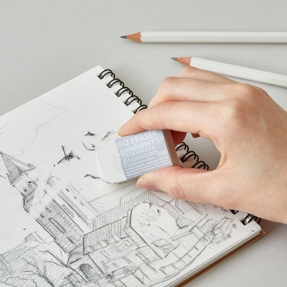 日本筆記本品牌STALOGY,由熊本熊之父水野學與具有高水準黏合技術的日東公司所合作創立。擦膠的包裝貫徹了水野學一向的設計風格,簡約且富有設計感,擦膠採用了環保材質製作而成,擦拭效果出眾之餘其產出的擦膠屑亦能輕鬆黏成一團,清理起來非常方便。