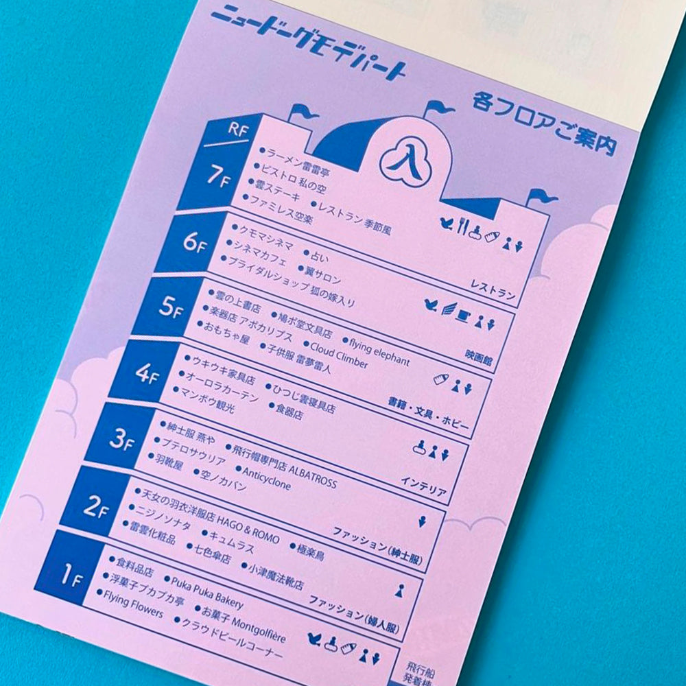 這次跟文具品牌LIFE合作推出的便條紙,將會以全新建構的雲之上百貨店作為主題,便條紙本中將會收錄了來自這間百貨的宣傳廣告、包裝紙、禮券和資訊單張﹐其完整性仿佛就像這百貨店真的存在一樣,非常有趣。每張便條紙的背面都是空白,你可以當作便條紙、信紙甚至包裝紙使用。