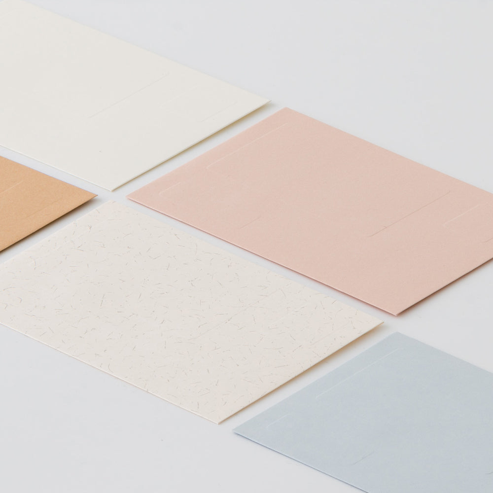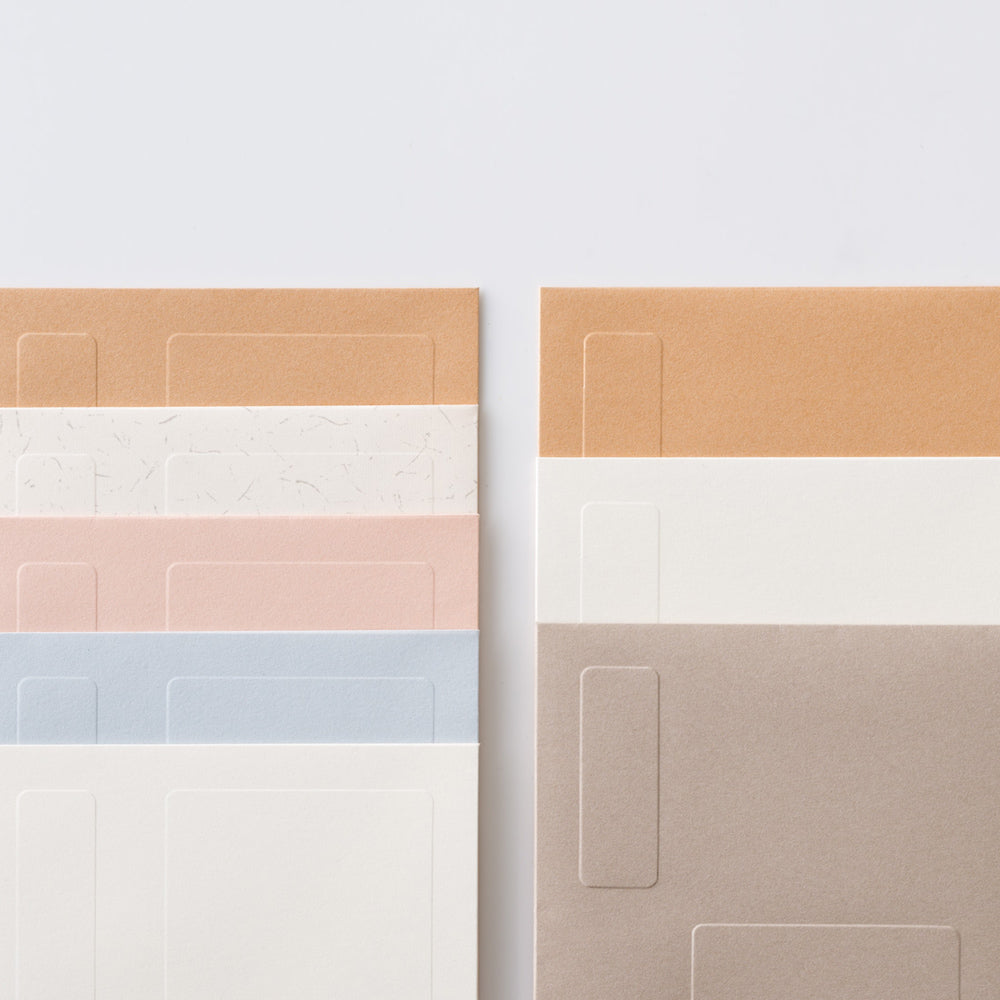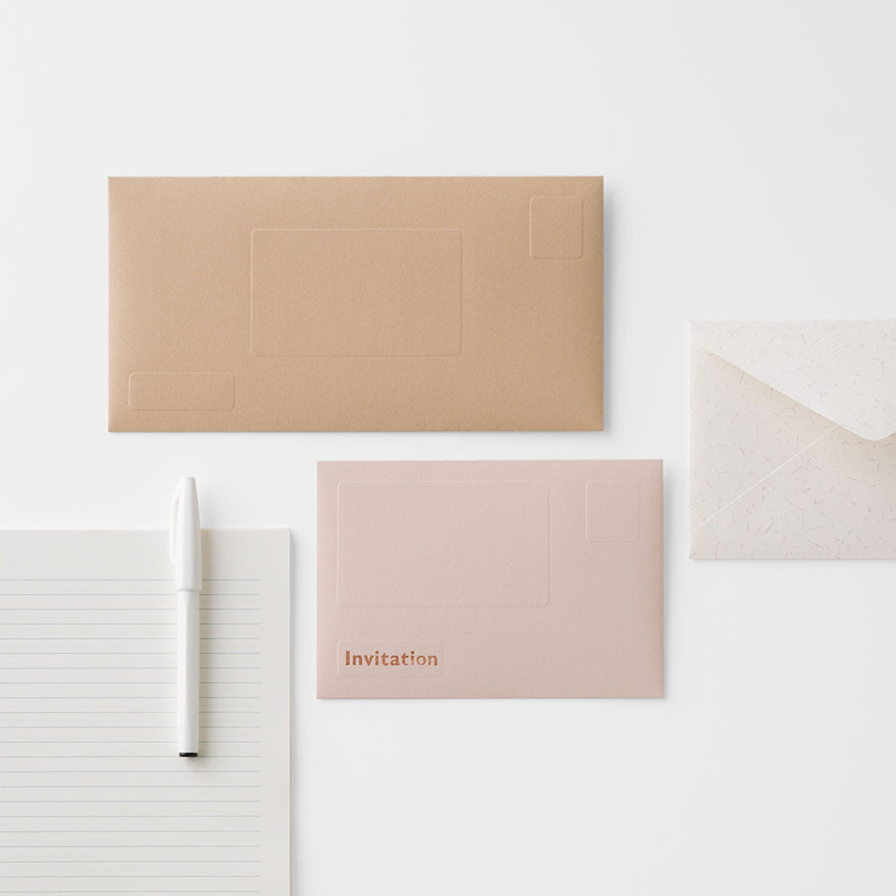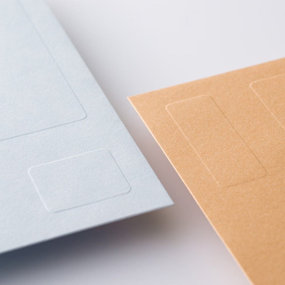 透過浮雕加工技術,在不使用油墨的情況下,大成製作了一款能清晰劃分信封中各個區域的極簡信封,透過加工後的浮雕壓紋,信封雖無印上任何圖案,但我們能感受到它的與別不同,在不同的光線下,信封上的壓紋會交織出不同的光影效果,呈現出日本文化中最引以為傲的簡約美。信封分兩種尺寸,S為洋型2号封,L為洋型長3号封,各款均包含三個信封及三張信紙。