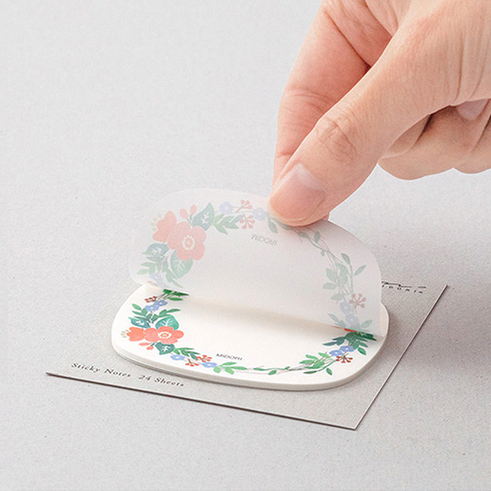 使用略帶透明的紙材製成的便利貼,觸感輕且柔軟,配上自然的形狀和配色,給人一種溫柔優雅的感覺。每款圖案的設計低調又不會過份單調,適合用於心意卡和小禮物的包裝上,配合手寫字將溫度傳給你珍重的對象。