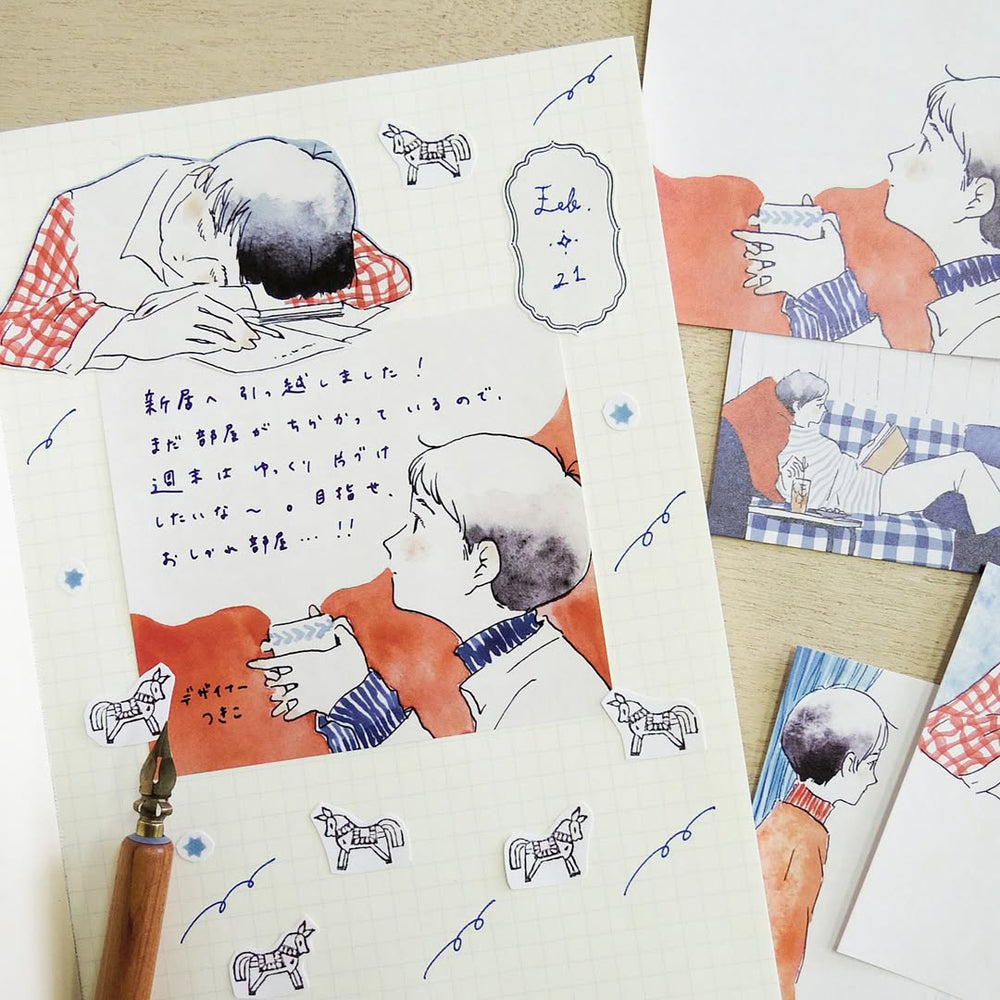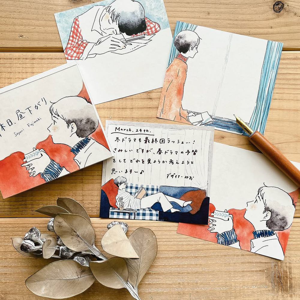 藤巻佐有梨本身從事建築設計工作, 及後以插畫師的身份活躍於書籍、海報設計甚至動畫,她擅長透過水墨筆觸營造氣氛,插畫中的主角大都帶點憂鬱,但那種淡淡然卻令你有種治癒和珍惜當下的感覺。休日.昼下這款便條紙描寫了假期時留在家中的幸福時光,一共收錄了四款不同設計,合共120張,適合對於便條紙有高需求量的用家,你亦可將之當作自己的小型日記,利用簡單字句記錄每天的心情。便條紙印刷精美,紙張厚實,不易滲透,封面做了UV效果,不論是自用或當作小禮物送給親友都可以。