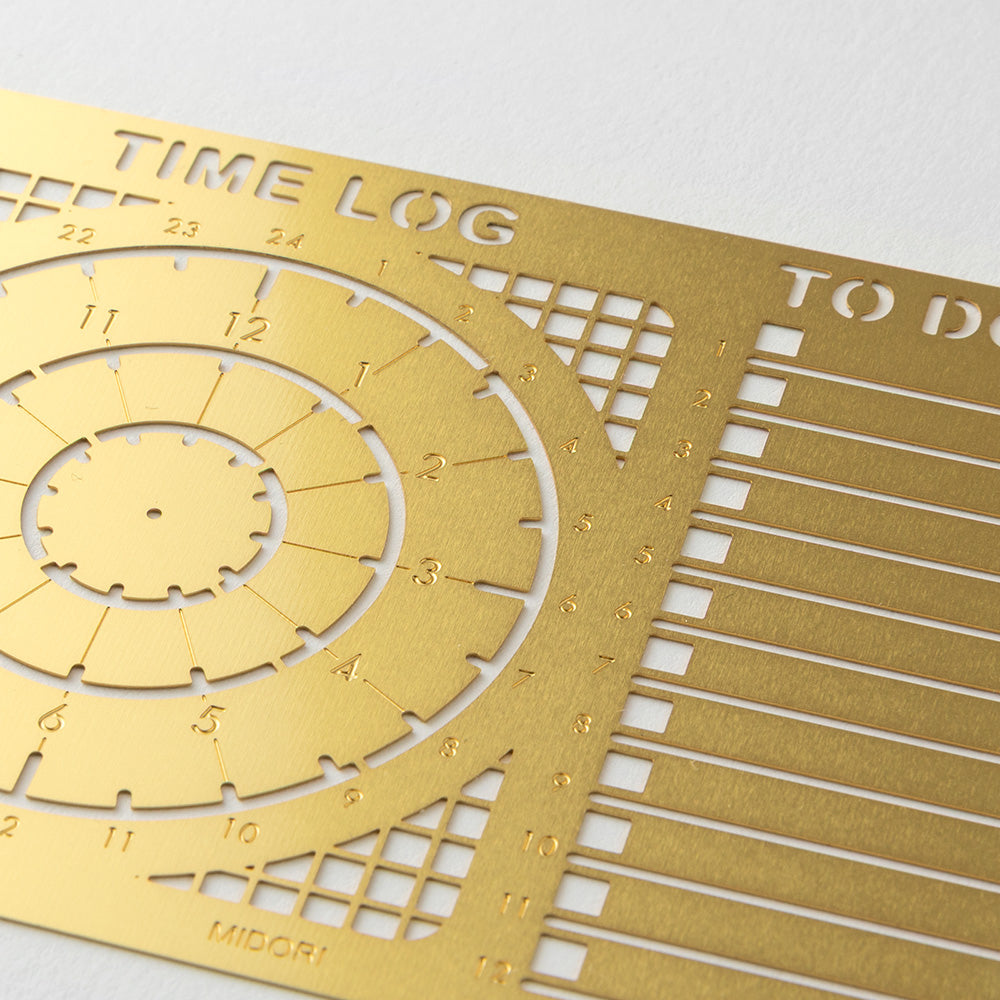 針對著手帳用家而設的模板尺,讓你輕鬆就能於每個頁面添加時間紀錄和各種行程計劃。模板尺由極纖薄、厚度僅0.3mm的黃銅製成,它可讓你輕鬆放入任何筆記本和手帳當中,充當書籤和迷你直尺。這款時間模板來設有三種不同大小的圓圈,你可跟據自己需要或資料的多少去繪畫合適的時鐘,你亦可選擇建立12或24小時的時間表,時間模板的旁邊另設可讓您繪製待辦事項的清單模板,實用性極高。