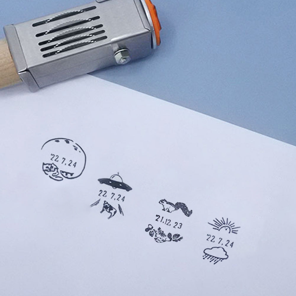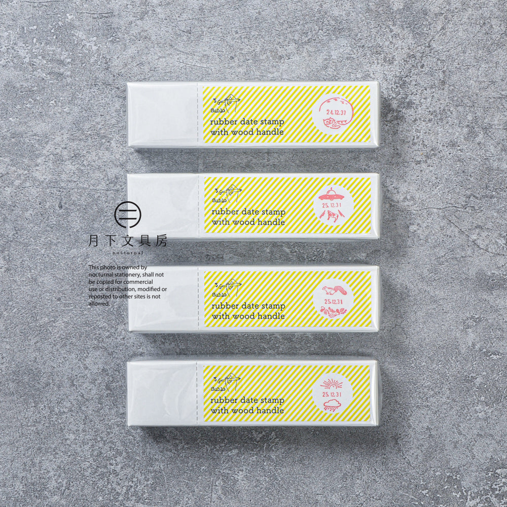 36 SUBLO是一家位於東京吉祥寺的文具店,主力發售充滿個性和復古感的精緻文具,同時也會定期與不同插畫師及設計師推出原創的橡皮印章、筆記本和紙膠帶等聯乘產品。而這款日期回轉印屬自家推出的印章款式,連同主題圖案整體會較一般的普通回轉印稍為大一點點,但同時亦為只有功能性的日期蓋章多添了一份個性,印章直徑約36mm,適用於辦公室、手帳或食用期限標籤上。