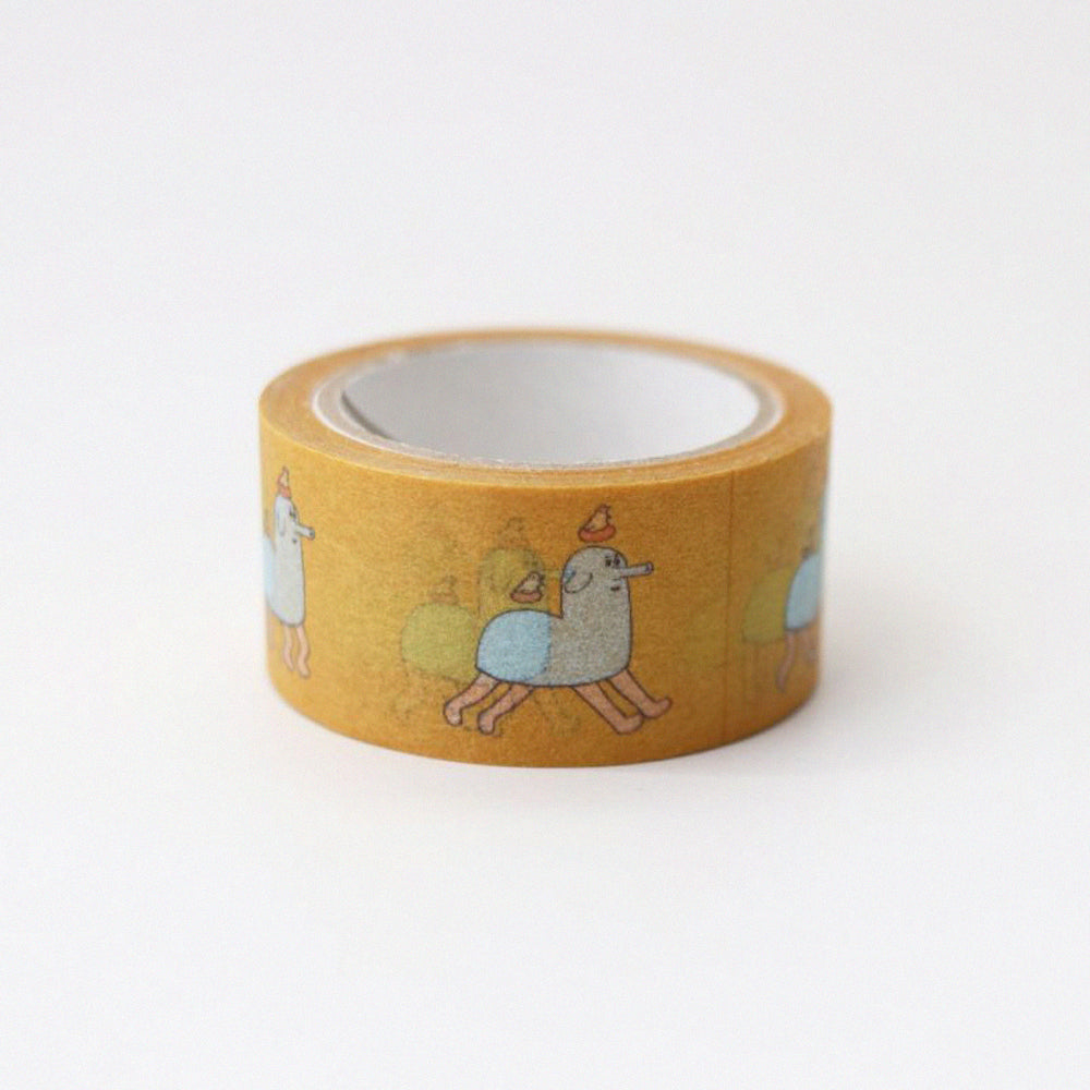 由36 SUBLO與插畫師makomo共同創作的吉祥寺非官方吉祥物「吉三先生」,他的頭上和腰間都住著小鳥,紙膠帶收錄了他跑動時的模樣,可愛又治癒,非常適合用於禮物包裝和裝飾手帳等用途。