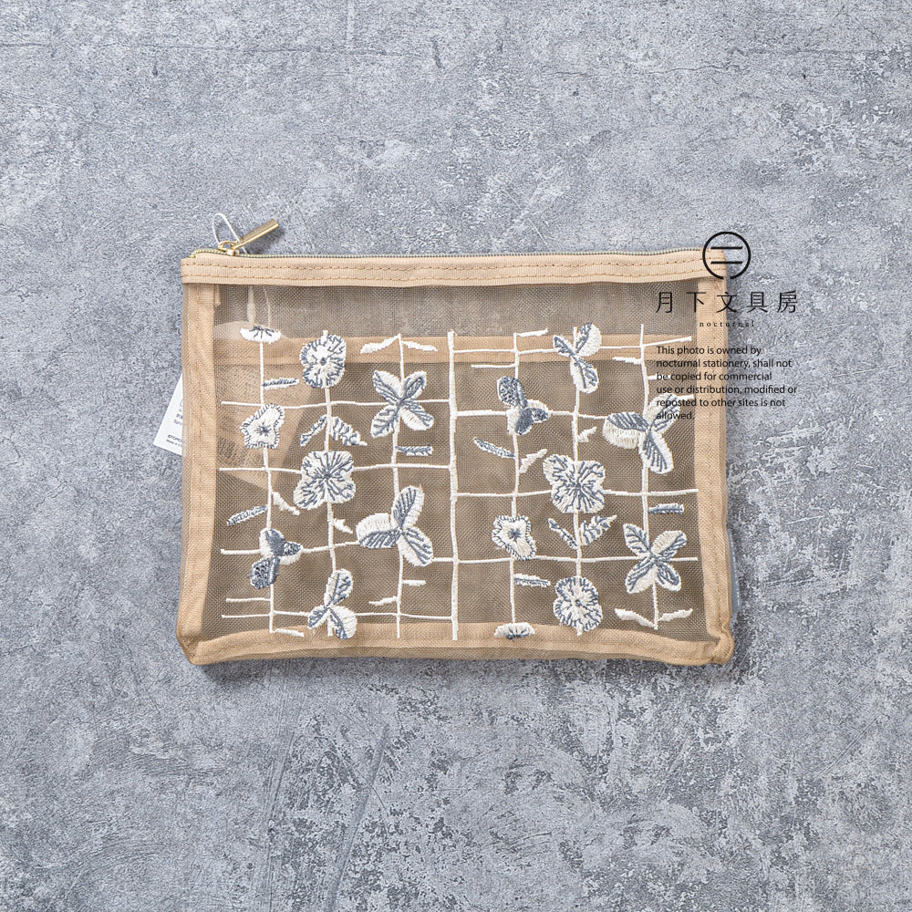 T-699 | UN TROIS CINQ x 村田智子 刺繡網布筆袋 (Sprout)