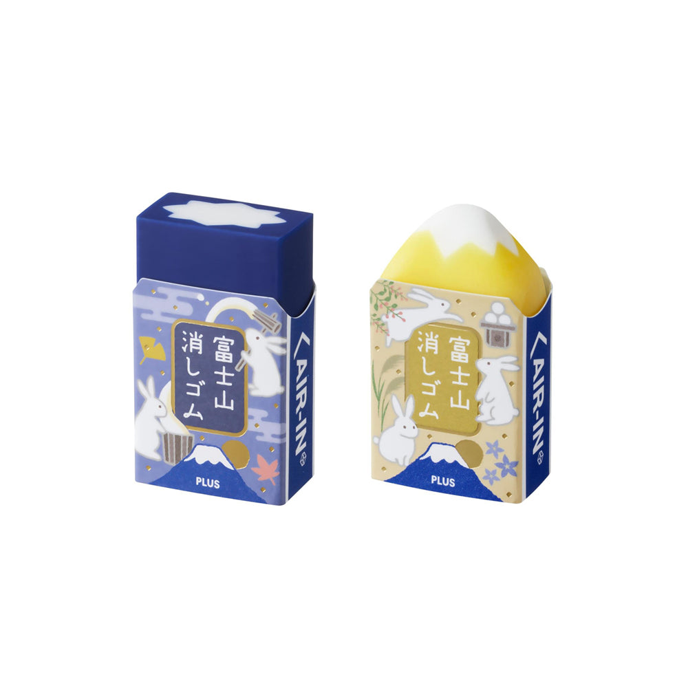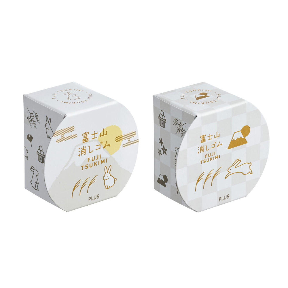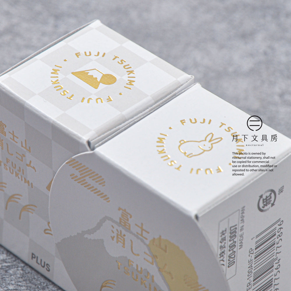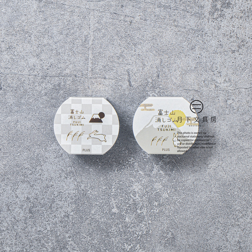 由PLUS推出的富士山擦膠一直深受大眾喜愛,每次推出的限定版本更成少不少文具控的搶購目標,其賣點是隨著用家使用次數遞增,擦膠就會出現只屬於用家獨有的富士山外型。而這次廠方將以中秋節的月亮作為為主題,推出名為富士月見的限定款式,並以套裝形式發售。套裝一盒兩件,分別有兔子和月亮與芒草兩款,而包裝盒子將以日本的月見團子作為創作靈感,可愛又充滿著節日氣份,而富士山的擦膠配色分面,這次將會是代表夜空和月色的夜富士(深藍)及月富士(黃)。