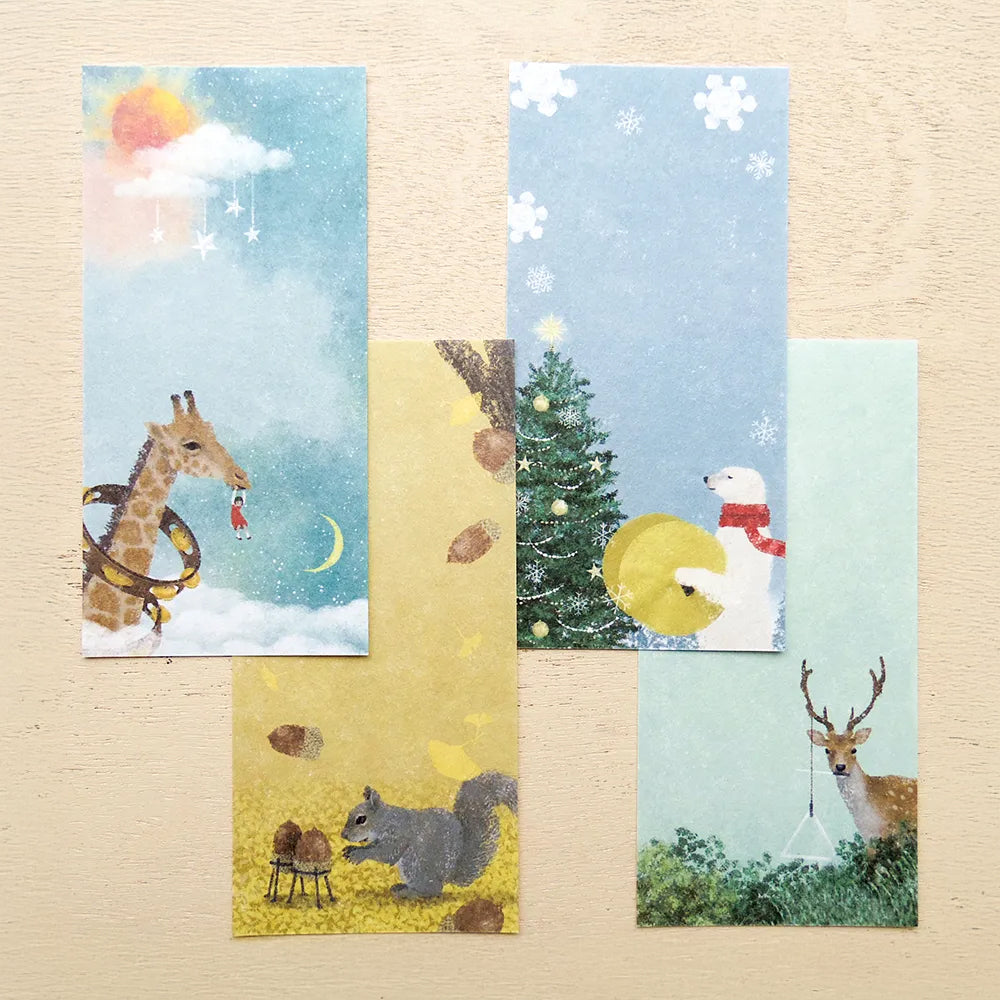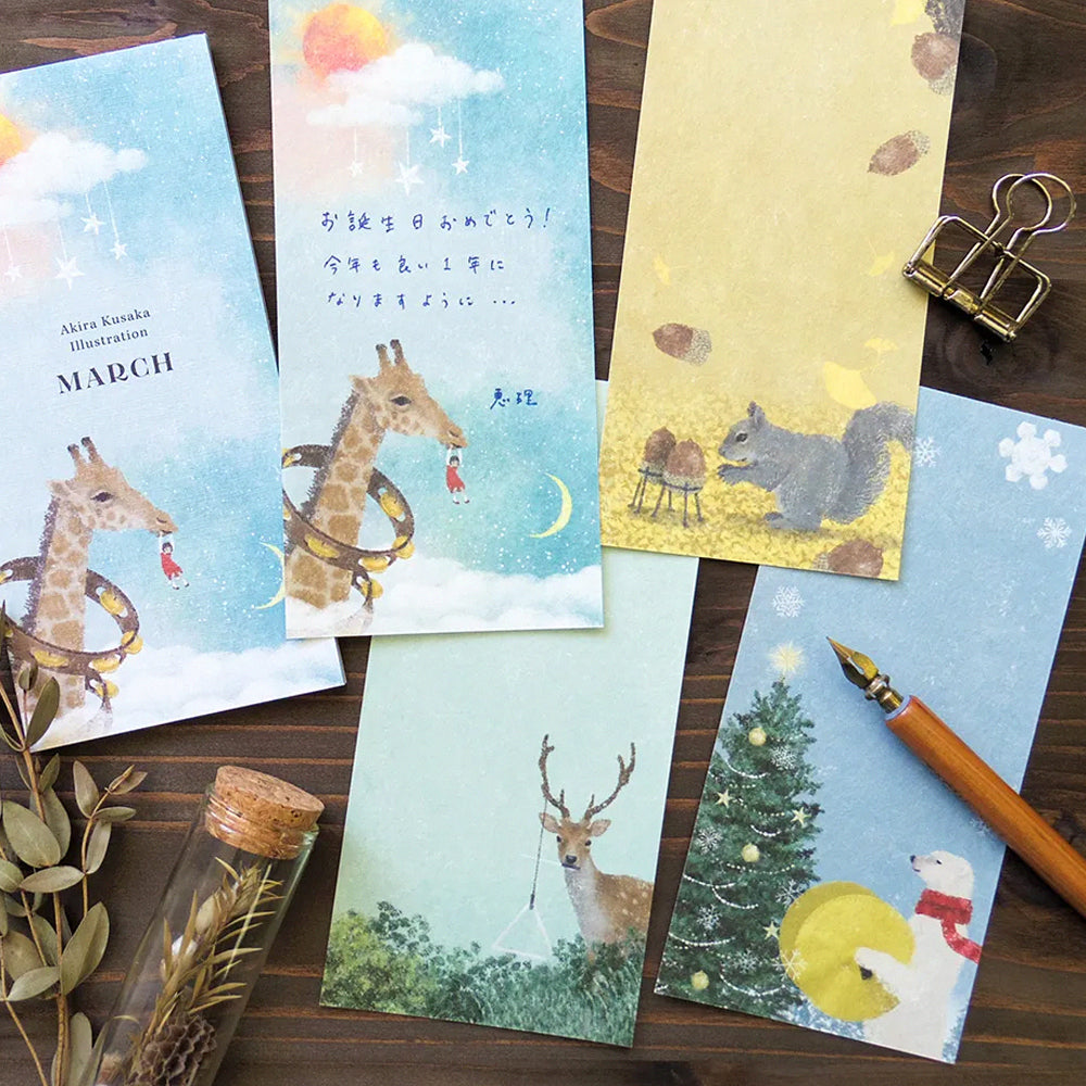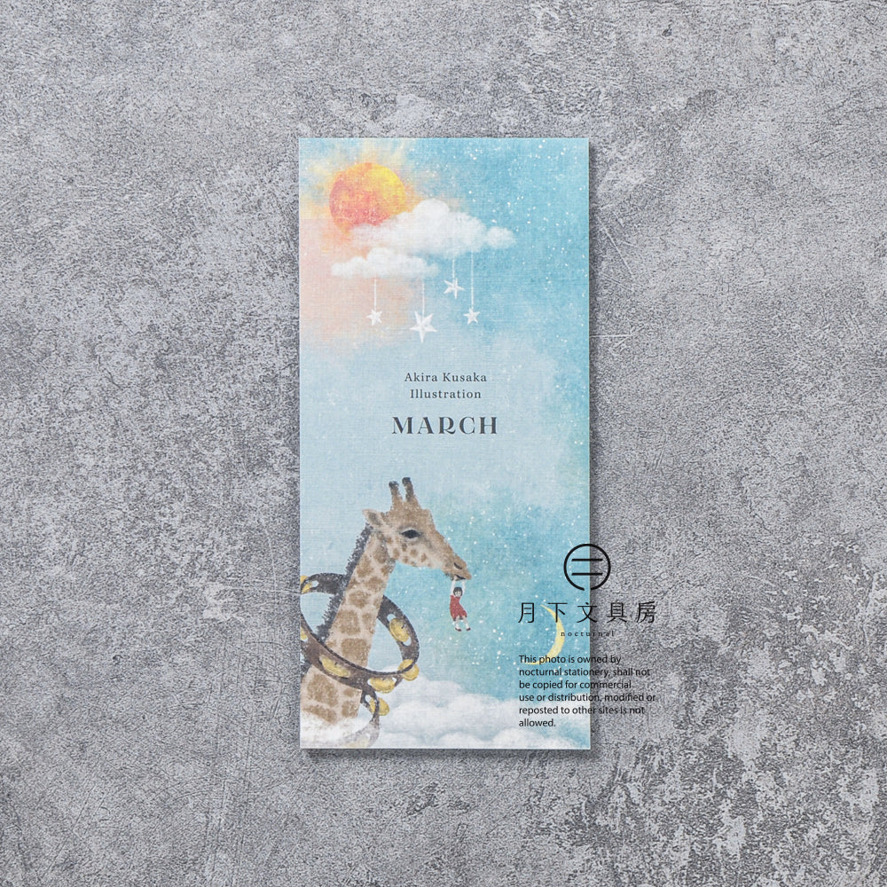 日本音樂插畫家日下明,擅於營造充滿故事性的人物和場景﹐其作品會讓人不自覺地聯想起背後的故事,而這次為表現社設計的一筆盞,同樣會跟各式各樣的樂器拉上關係,並由他筆下的動物負責演奏,非常有趣。一筆盞採用了具粗糙質感的美濃和紙製作,一共收錄了四款不同設計,合共20張,適合用來留下重要信息或作小型書信使用。