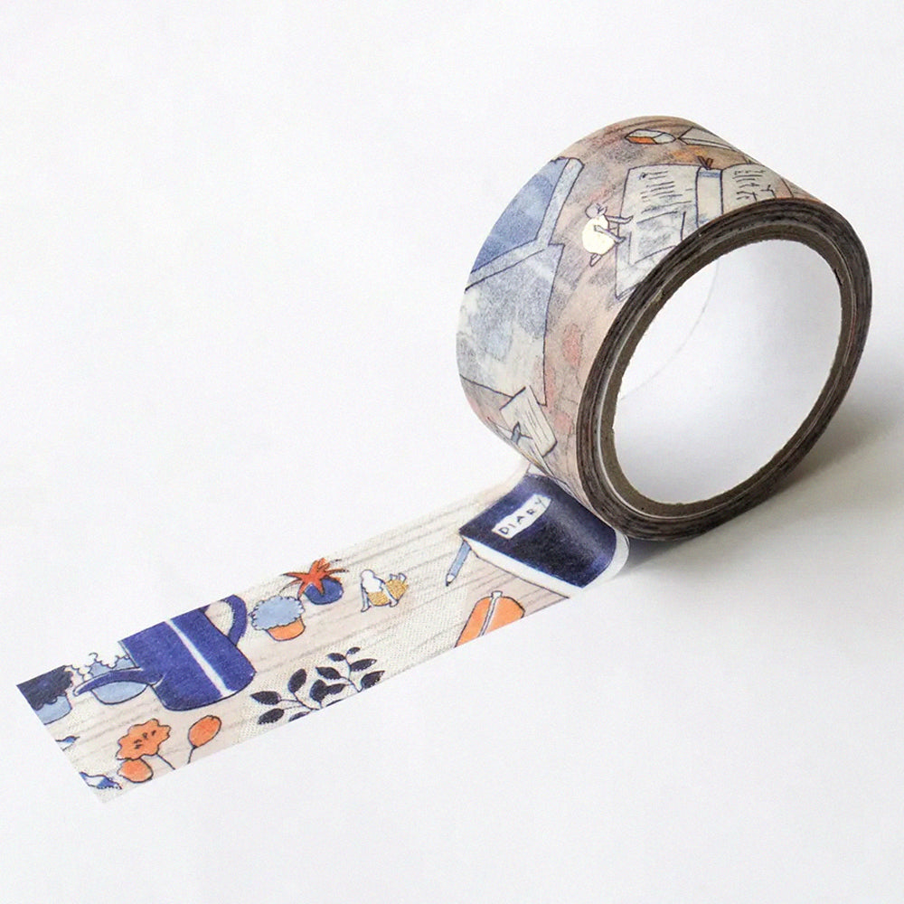 每段都帶有華麗閃爍的金箔!由表現社打造的金箔紙膠帶,擁有和紙膠帶的豐厚觸感,同時因應不同畫師的插畫而配上不同的燙金效果,比一般紙膠帶更具層次感,適合用於手帳裝飾、書信和禮物包裝上。這款由藤巻佐有梨繪製的紙膠帶,描繪了早晨桌子上精靈們遊玩的情景,細緻的金箔美麗地表現了光線照射在桌面時所產生的閃爍效果。