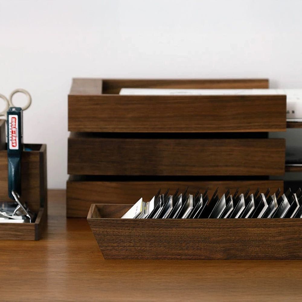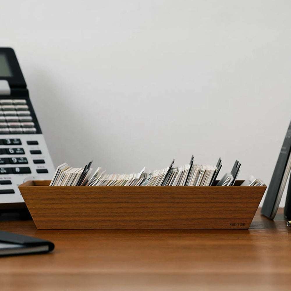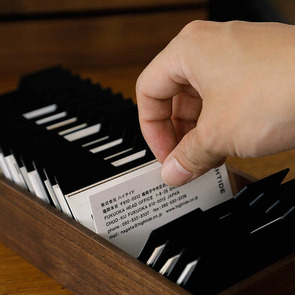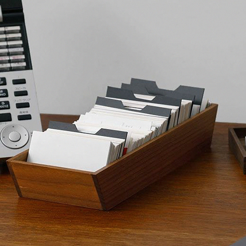 BUTLER一字有著管家的意思,其理念是製作出有助整理桌面和提升桌面氛圍的用品,仿佛像你的桌上管家一樣。BUTLER系列重視外觀、品質和耐用性,並且採用了會隨時間轉變的天然素材,即使長時間使用,也不會感到厭倦和乏味。卡片收納架最多能容納680張卡片,可拆卸的索引設計讓用家能隨意調整間距,你甚至能把它當作小物或帳單的分類收納架使用,在使用上更具彈性。收納架本體材質為胡桃木,隨著時間的推移,其顏色和光澤都會慢慢改變,演化成獨一無二的模樣﹐它不單實用,而且非常好看,猶如一件高級的桌上擺設。日本製。