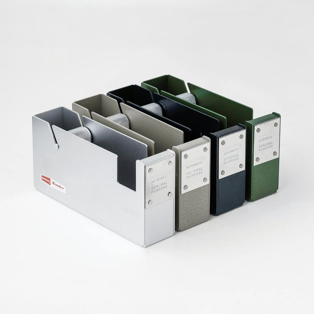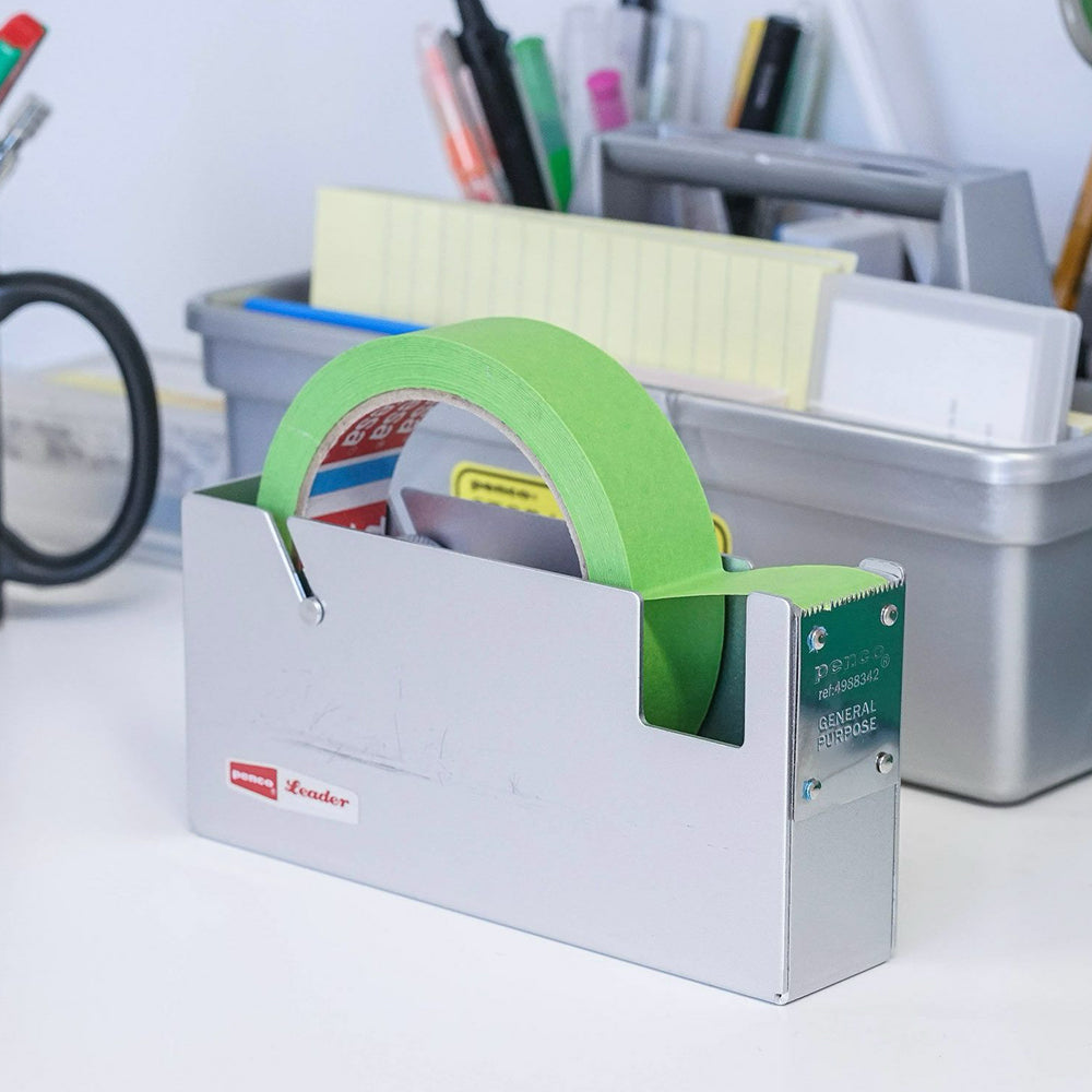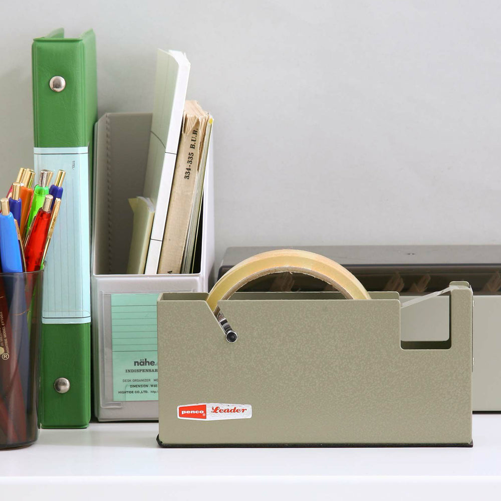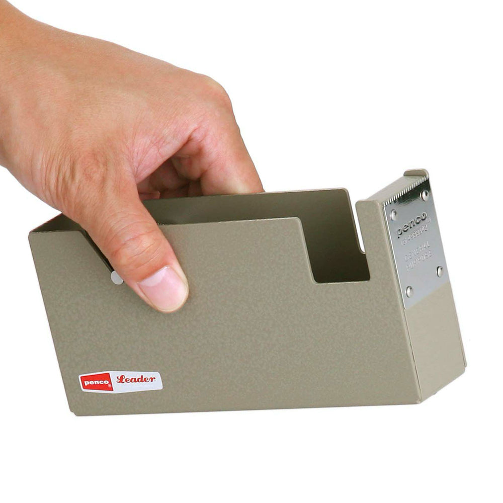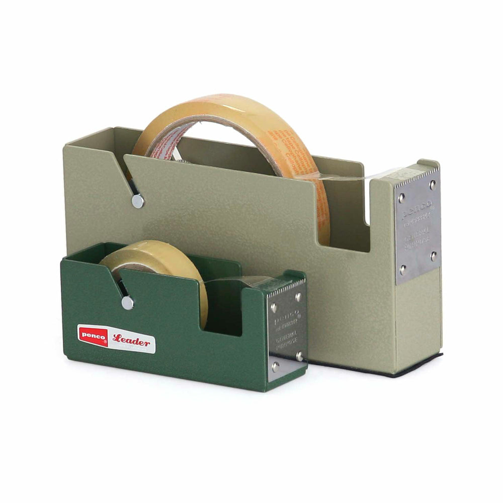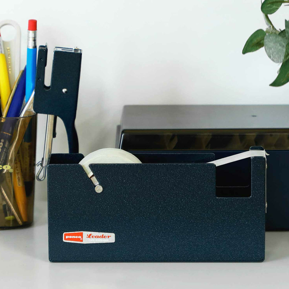 既是工具同時也是一件桌上裝飾品,帶有一貫penco風格的復古膠紙座,共兩種不同尺寸可供選擇,可擺放紙膠帶及一般膠紙,膠紙座採用堅硬耐用的鋼材製造,本體經過抗銹和抗刮的槌紋處理(銀色款沒有槌紋),展現出濃厚的工業風格,在光線下槌紋上的細微凹凸會展示出獨特的質感。膠紙座本身已有一定重量,考慮到用家有機會需要單手使用,膠紙座底部特設螺絲孔,方便用家將之固定在桌面上,不論是辦公室及家居均適用,膠紙座附帶精美包裝,送禮亦可。
