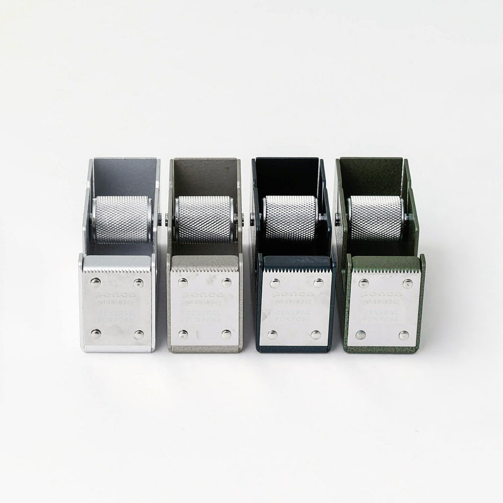 既是工具同時也是一件桌上裝飾品,帶有一貫penco風格的復古膠紙座,共兩種不同尺寸可供選擇,可擺放紙膠帶及一般膠紙,膠紙座採用堅硬耐用的鋼材製造,本體經過抗銹和抗刮的槌紋處理(銀色款沒有槌紋),展現出濃厚的工業風格,在光線下槌紋上的細微凹凸會展示出獨特的質感。膠紙座本身已有一定重量,考慮到用家有機會需要單手使用,膠紙座底部特設螺絲孔,方便用家將之固定在桌面上,不論是辦公室及家居均適用,膠紙座附帶精美包裝,送禮亦可。