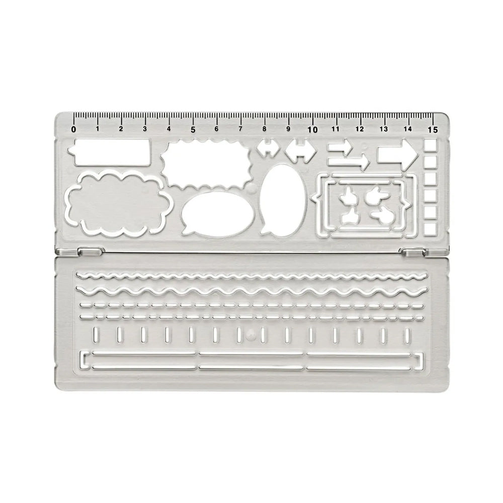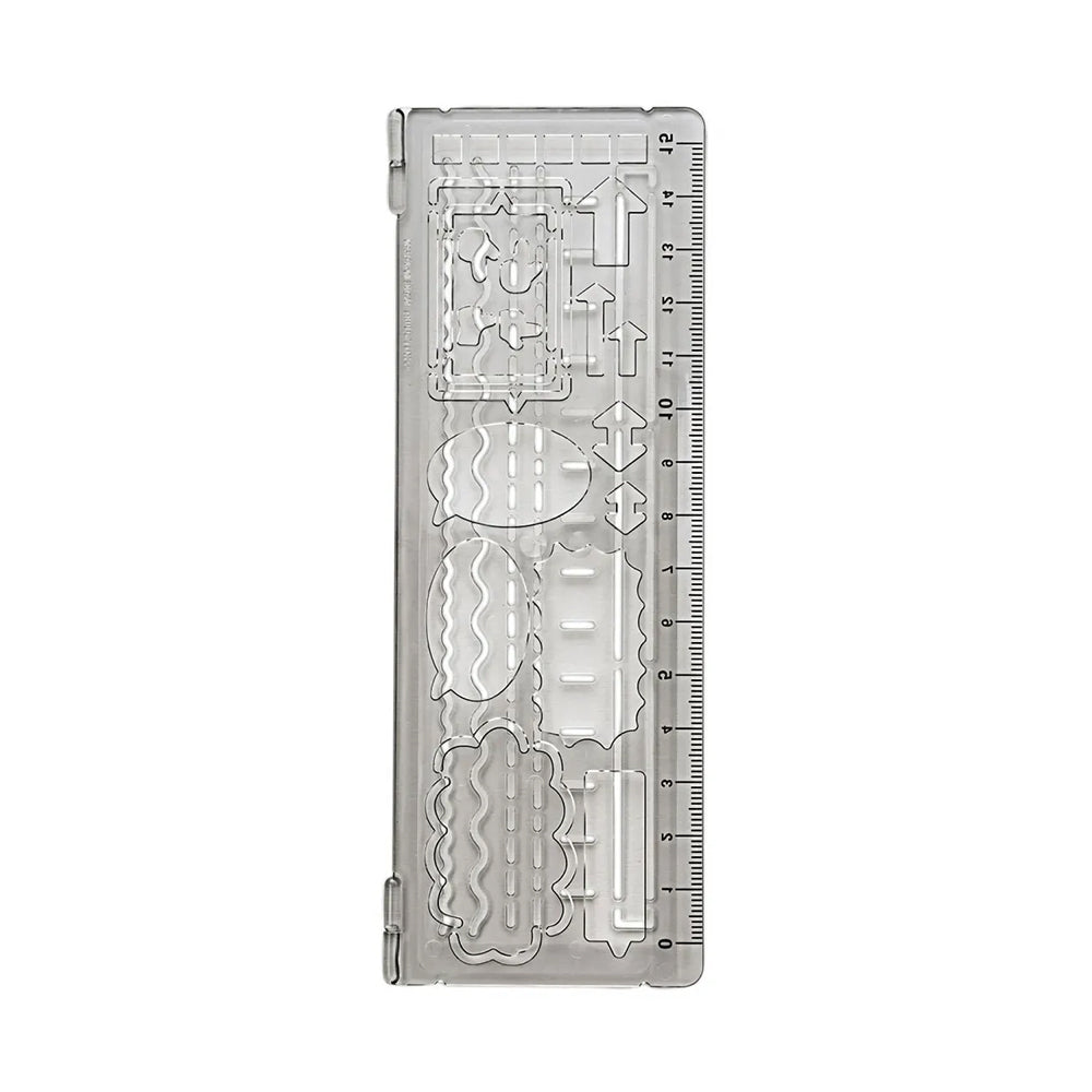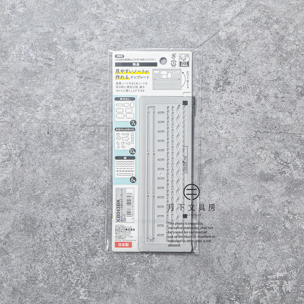 製作筆記沒難度!由KUTSUWA開發的全新泛用模板尺,以抄寫筆記為主要用途,擁有基本的直尺刻度和多達23種框線模板,不論是對話框、箭咀、分隔線和方框都一應俱全,有助提升用家製作筆記時的效率,也適用於一般手帳,模板尺為摺疊式,令收納和攜帶更方便,產品為日本製。